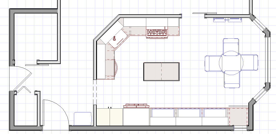 In the existing plan, it shows just how well the space is laid out, how it flows so well from dining space to kitchen, the amount of light and the ease that the working triangle provided along with loads of countertop space.