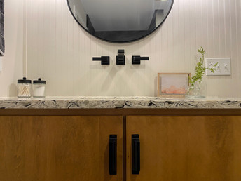 The after photos show how great all of the spaces work together pulling finishes into spaces, adding texture and tones that don’t overwhelm but shout their vibe they were aiming for. A blend of bright wall paint with moody cabinetry and warm wood tones balances the open spaces just right. Along with layered lighting which gives control over the ambiance. Check out the after photos below of each space!